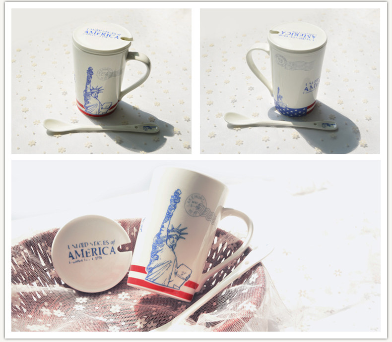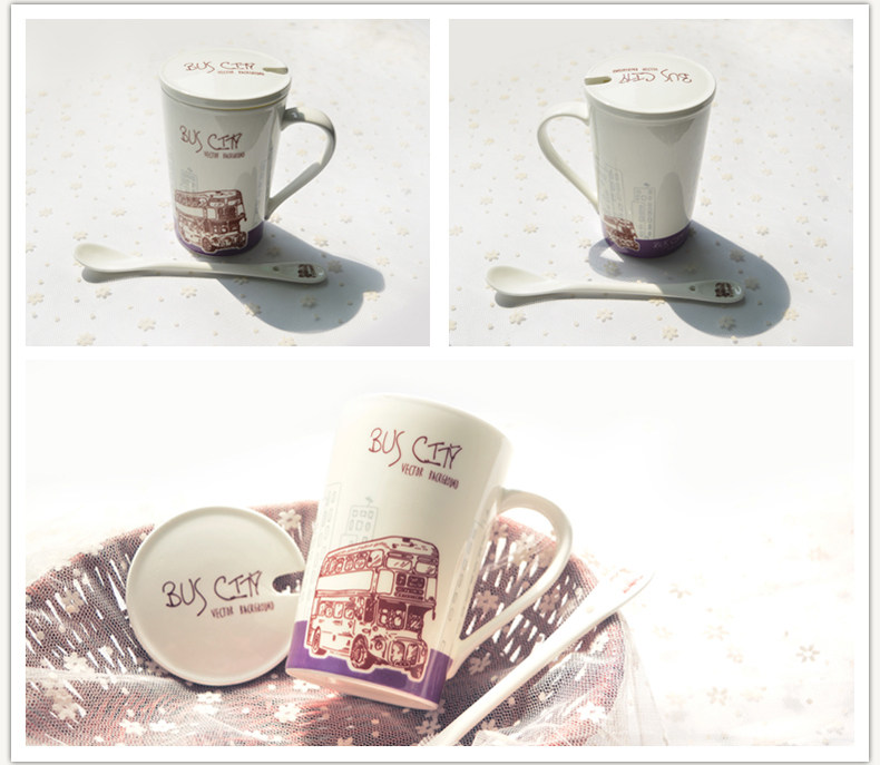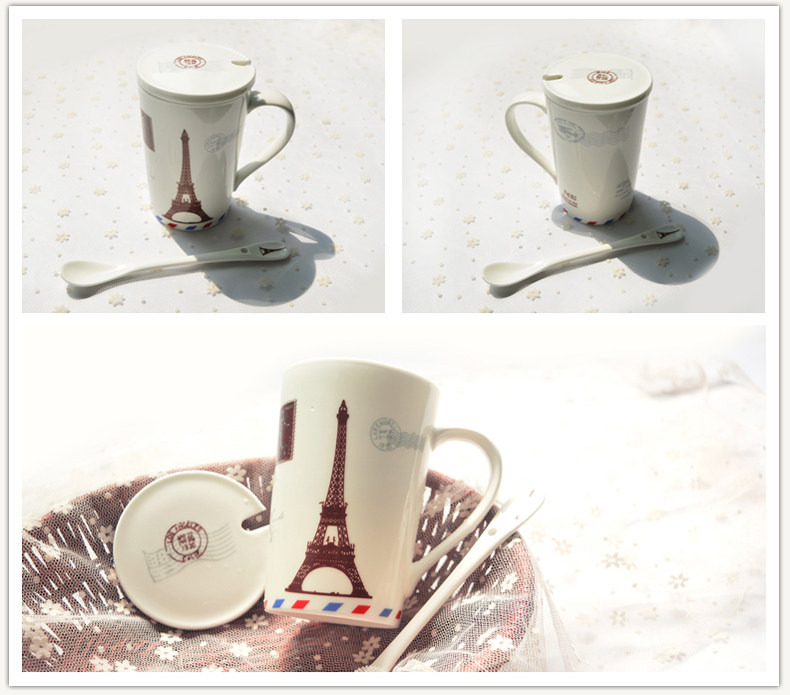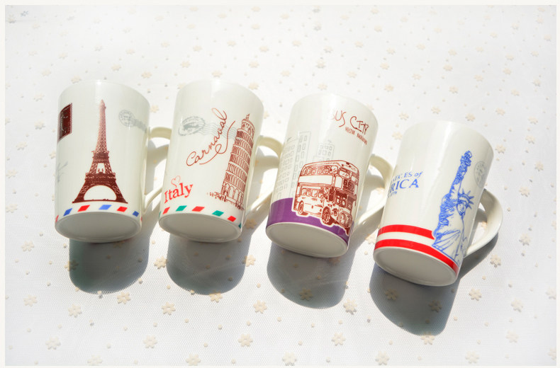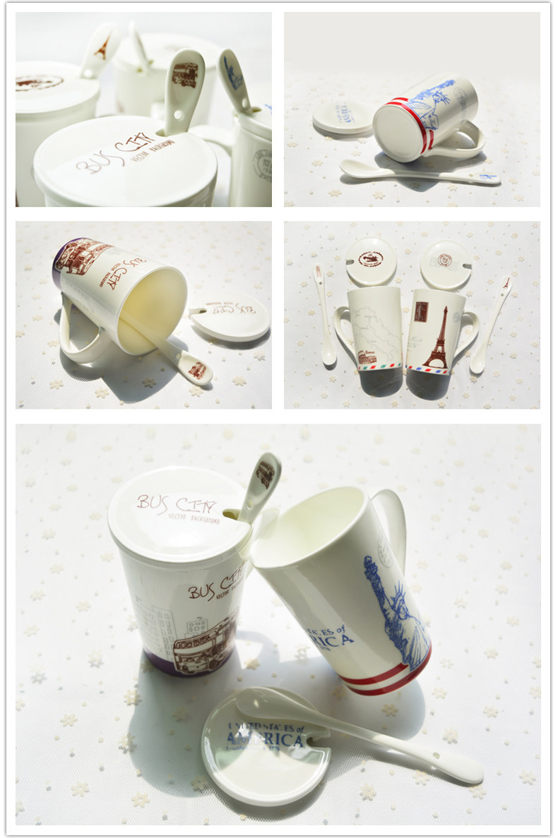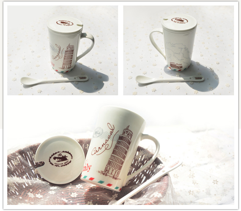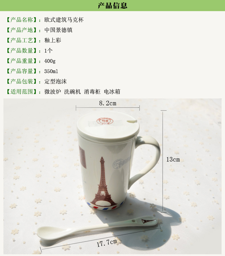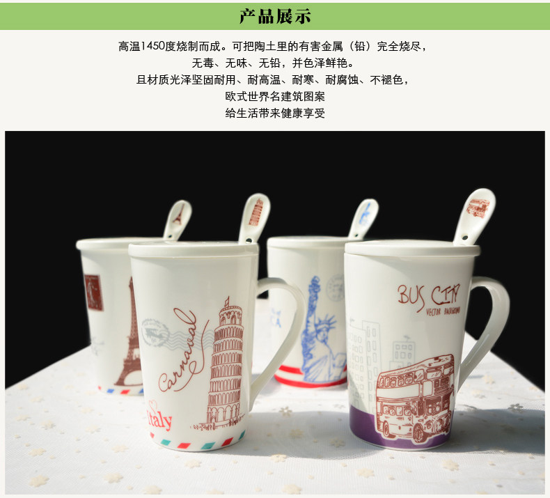星巴克欧式建筑经典陶瓷马克杯咖啡杯简约创意水杯子带盖勺