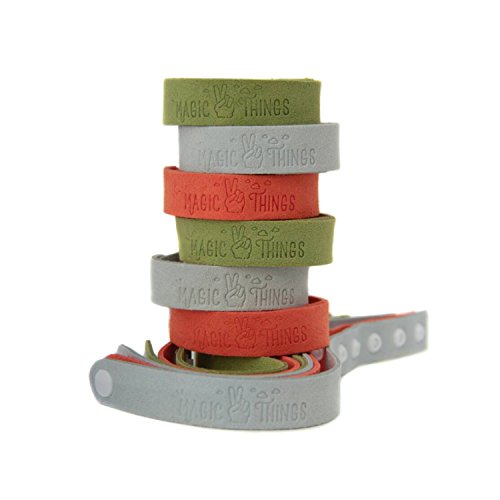 Magic Things Natural Mosquito Repellent Bracelet with Citronella, 6 Pack with 3 Colors (2 Red, 2 Green and 2 Blue)