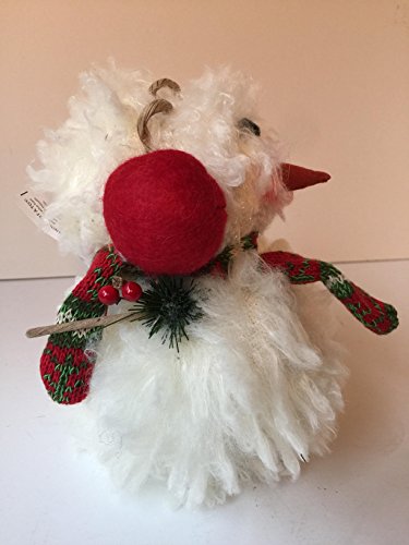 OSW Fuzzy Snowman Plush Tabletop Decoration Frosty Alpine White with earmuffs 7 Inches Tall