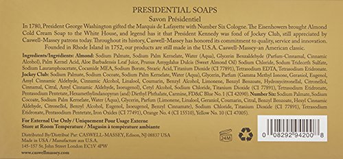 Presidential soap collection - presidential collection includes three bath soaps (5.8 ounce), triple-milled for lasting performance and fragrance: number six, washington's favorite; almond cold cream, selected by eisenhower; And jockey club, the choice of JFK. A five star gift.Feature