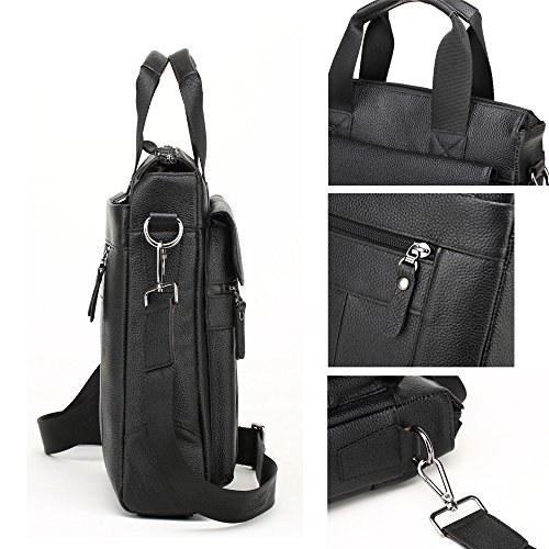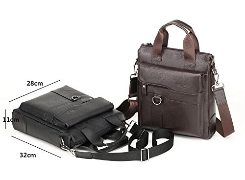 -. Feature : Material:100%genuine leather.Traditional manual craft, durable nylon thread sewing and excellent workmanship . / Structure: 1 main zipper pocket with phone pocket+ credentials pocket+Compartment, 2 front pockets , 1 back zipper pocket . / Size info: 32 x 28 x 11 cm Adjustable strap with metal buckle (appr. 85 ~ 130cm) Large enough to keep all of your items organized on the go with this messenger bag! / Simple and fashionable, can be used as lawyers briefcase, shoulder bag, laptop bag, or hand carry functional briefcase. Classic design is perfect for business men. / This spacious shoulder bag can hold all of your necessities for your every dayuse, iPad, iPhone, A4 file, umbrella and other business things.