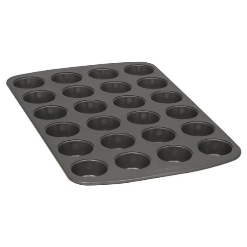 -. Feature : 24-cup mini muffin pan with nonstick coating on professional-weight steel / 2-ply steel fortified with ETP for enhanced durability and rust protection / Delivers even cooking results, optimal browning, and easy release of baked goods / Use non-metal utensils only; broiler-safe rating / Dishwasher safe; 5-year limited warranty