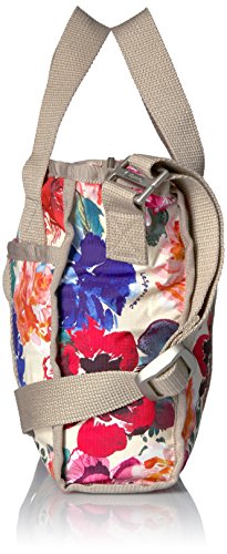 Zip top closure, exterior slide pockets with snap closures on front & back