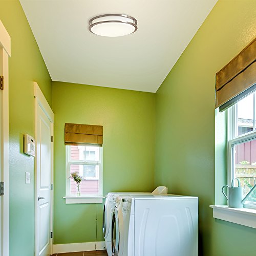 Envirolite LED low profile Ceiling light fixtures are designed to enhance any decor and with a clean, fresh appearance. This modern LED Ceiling light fixture easily mounts Flush with the Ceiling, and the low profile design keeps it out of the way of closet doors. The protective Brushed Nickel finish will look great for years to come, and the White lens diffuses the LED light evenly. You won't see any dark spots or shadows. This Flush mount uses a LED powered lighting Engine instead of light bulbs to produce higher quality light for a fraction of the electricity, saving you money off your utility bill. This light fixture produces 1,000 lumens (about the equivalent of a 100 Watt bulb) using only 25 watts. The LED lighting source is made to last for 45 years at 3 hours per day; there are no bulbs to replace -ever! this Ceiling fixture is energy Star listed and environmentally friendly.Feature