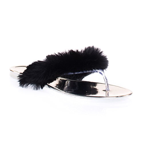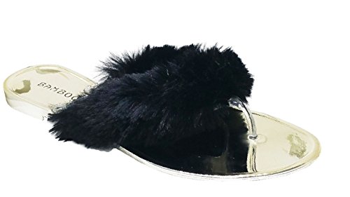 Binding : Apparel Product Description About This Shoes :Simple slipper thong sandal with clear Lucite straps, metallic sole and faux fur straps. Brand - Bamboo Colors Available: Black, White Occasion: Casual Shoe Type: Flats- Open Toe Shoe Style: Slides Inner Lining: synthetic Heel Height In Inches - 0.25 Heel Style - Toe Style - open-toe Platform Height In Inches - 0.25 Shaft Height In Inches - n/a Circumference Opening - n/a Strap Type - Sole - manmade Condition: New without box(shipped in padded envelope) All Man Made Material unless otherwise stated. Computer/Phone/Table monitors might show color differently because of its quality or calibration, we suggest you look at the photo in at least 3 monitors if you need exact color match of your shoes. 0