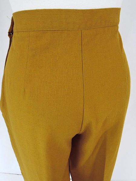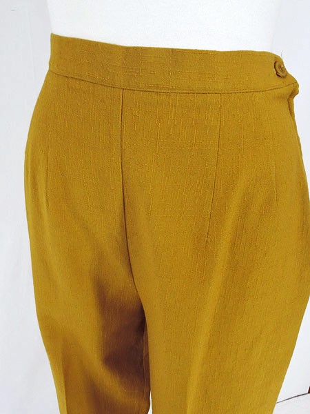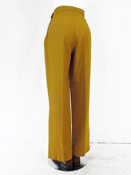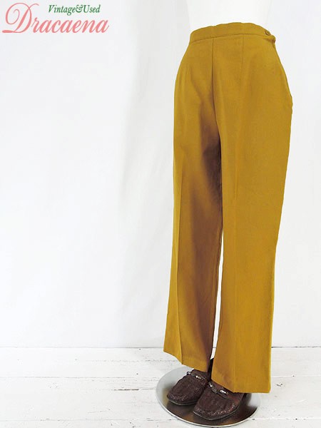 Ladies ブランド- カラーマスタード メール便不可 コンディション★★★ 素材ポリエステル・レーヨン 表記サイズS 実寸サイズ 着丈 100 cm ウエスト 27 インチ( 68 cm) レングス(股下) 27 インチ(69 cm) 股上 32.5 cm 太もも幅 31 cm 裾幅 21 cm ※ウエスト・ヒップ以外は平置き採寸