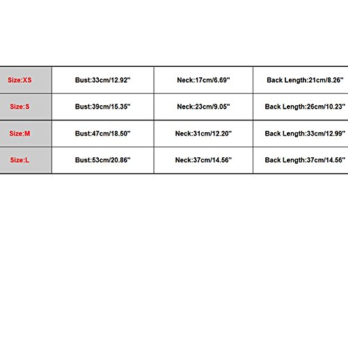 -. Feature : Material:Nylon+Polyester / Durable,comfortable,warm enough,easy to wear and clean. / Perfect for walking,jogging Keeps pet safe and easy to spot / Soft material keep little pet comfortable and warm during the cold winter / TIPS:Your baby usually wears size S doesn't mean all size S will fit him/her!!!So please measure your dog and have a reference before your purchase according to the size map below Product Description