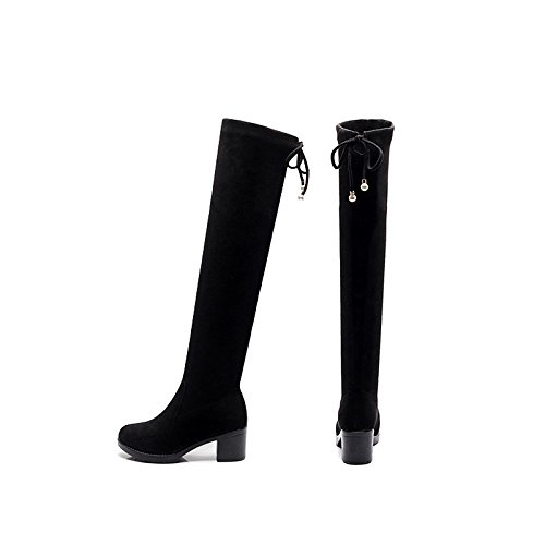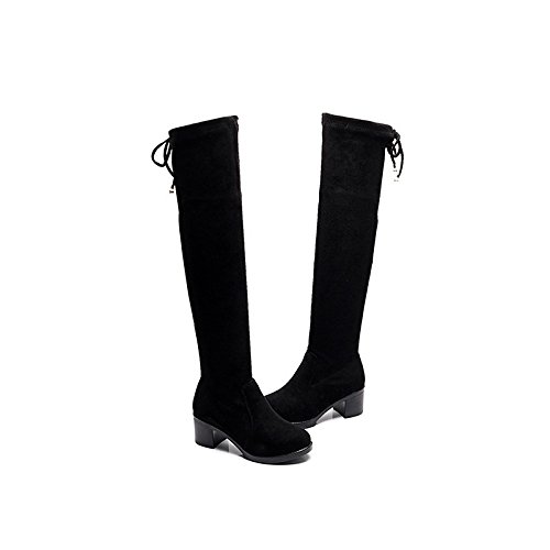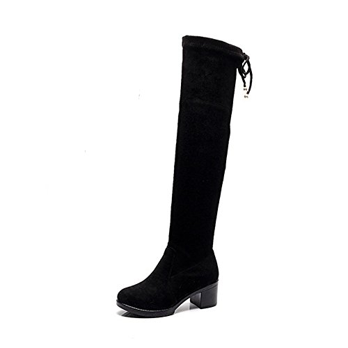 Studio : WKIDWX Publisher : WKIDWX Product Description Style:Fashion Boots, Occasion:Party\Evening,Dress, Gender:Women's, Category:Boots, Upper Materials:Flocking, Outsole Materials:PU (Polyurethane), Lining Materials:PU, Insole Materials:PU, Heel Height:2in-2 3/4in, Toe Shape:Round Toe, Season:Winter,Fall, Heel Type:Chunky Heel, Boot Shaft:Thigh-high Boots, 0