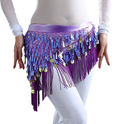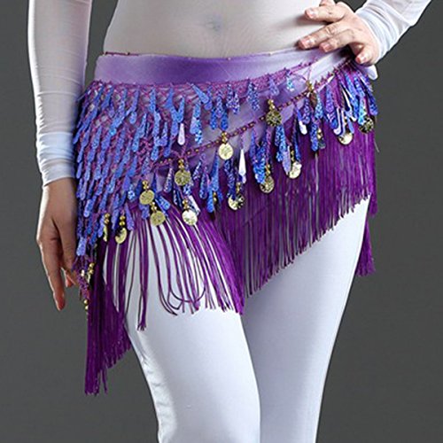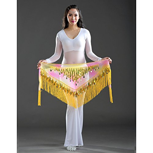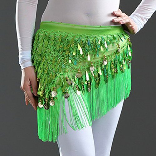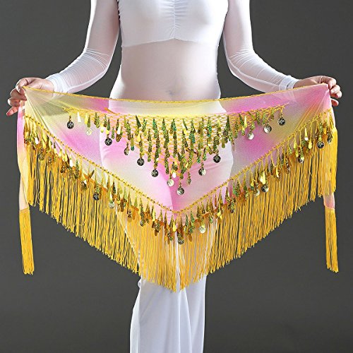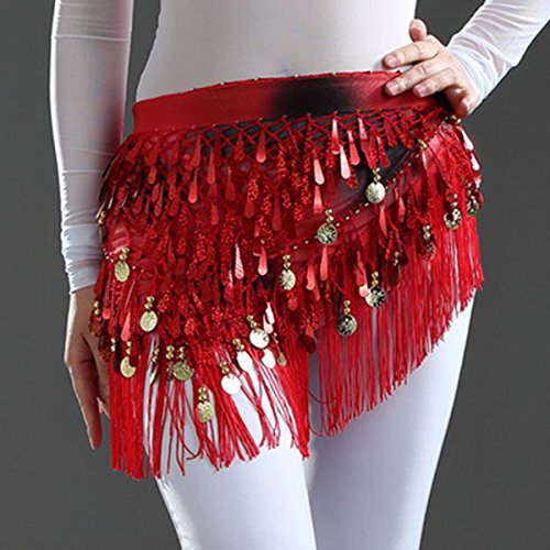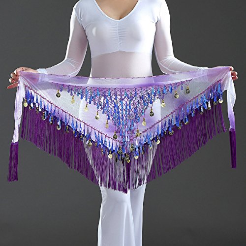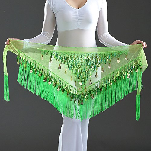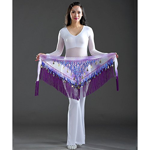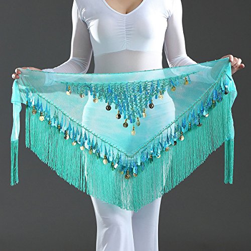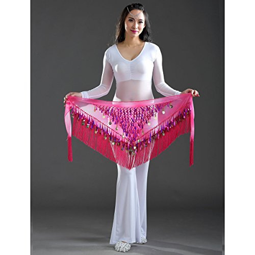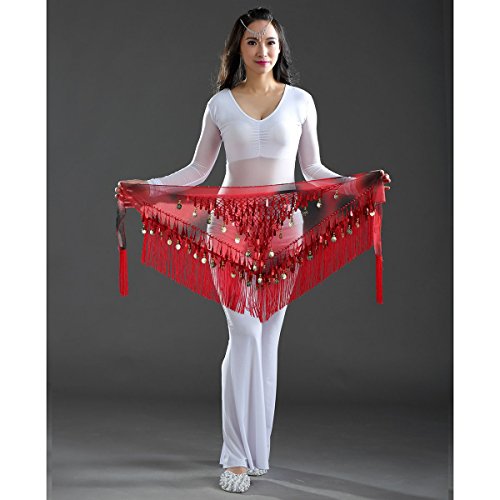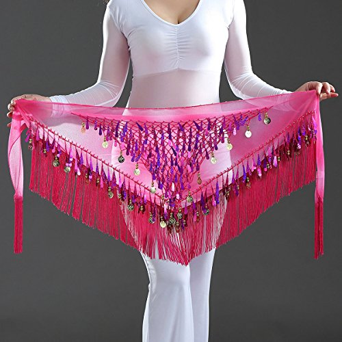 | Women Belly Dance Hip Scarf Triangle Tassel Belt Wrap With Coins Sequins |