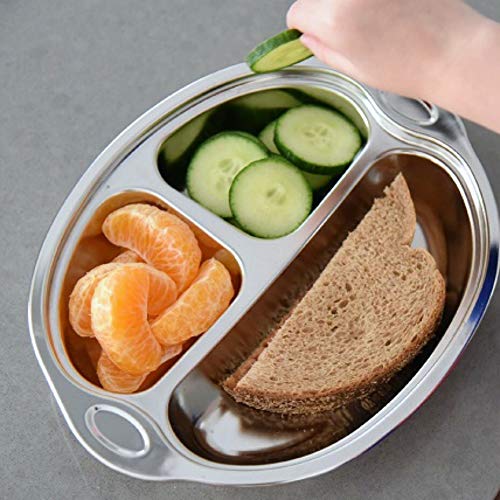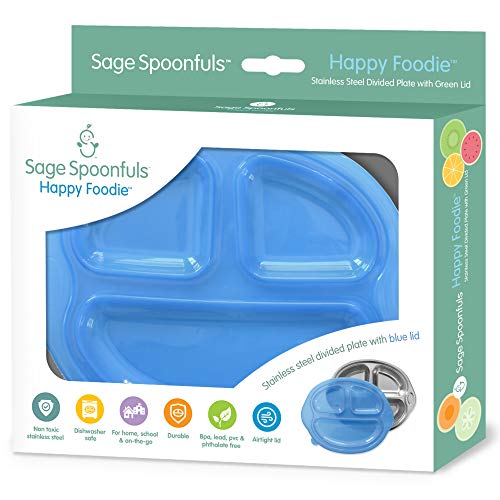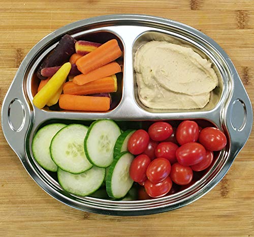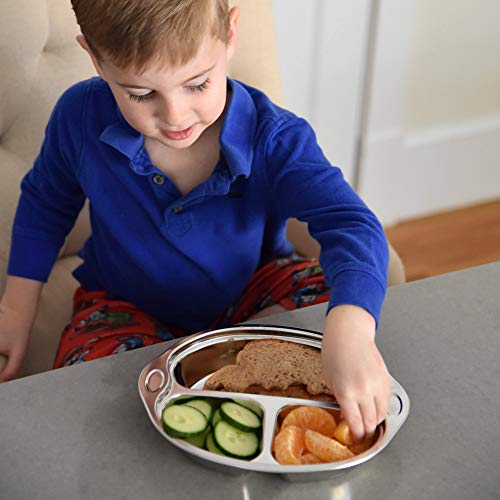 Sage SpoonfulsによるHappy Foodieステンレススチール分割プレートは、自宅でも外出先でも食事時間を楽しくします!うるさい食べる人に最適 - 3つの子供向けのコンパートメントは、食べ物を分けています。赤ちゃん、幼児、大きなお子様連れの食事にご利用ください。キャンプ、ピクニック、健康的な学校給食の梱包に最適です。食器洗い機、冷凍庫、オーブンセーフ。プレートの寸法は10 "W x 8" H x 1.75 "D