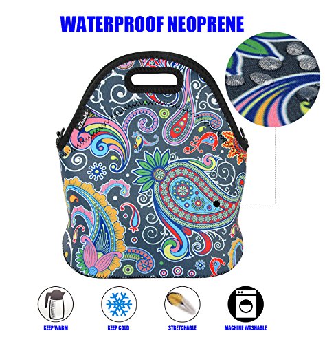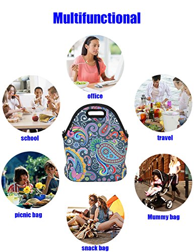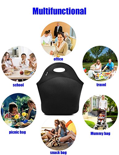 -. Feature : ECO-FRIENDLY, REUSABLE MATERAIL: This lunch bags for women men is Made from 4.5mm thick Reusable and Washable insulating neoprene (Heathty, Enviroment-friendly and Save money). / SIZE: [11.2" x 11.2" x 5.2"] The Large Lunch Tote can hold different containers,with zip closure keep food inside secure. / FORDABLE: This neoprene lunch bag with flat bottom Can keep boxes uP.R.Ight and provides enough sapce. just fold it into flat when not in use. / INSULATED MATERIAL: This insulated lunch bag can keep food cold (or warm) for hours, depending on the outside temperature. / 100% SATISFACTION GUARANTEE: 100% money back guarantee or replacement.