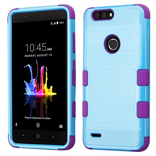 MyBat ZTE-Sequoia/Z982 (Blade Z Max) Metallic Baby Blue Brushed/Electric Purple TUFF Hybrid Phone Protector Cover