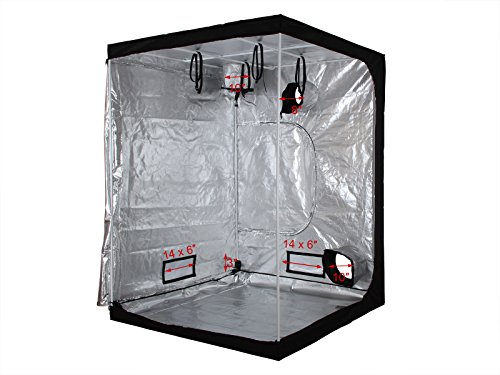 -. Feature : Style: Non Toxic Upgraded Grow Tent with Improved 100% Reflective Interior Mylar / Dimensions: 60"x60"x78" (Approx. 5x5x6.5Ft) / Exterior Material: heavy duty 600D lightproof oxford cloth / Interior Material: 100% highly reflective waterproof diamond mylar / Frame: white paint coated metal rods