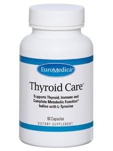Thyroid Care 60 caps Dietary Supplement - Supports Thyroid Immune and Complete Metabolic Function* - Iodine with L-Tyrosine Thyroid Care provides superior nutritional support for healthy thyroid and immune function. Optimal levels of iodine benefit the thyroid gland and enhance metabolism. L-Tyrosine plays an important role in the production of thyroid hormones. L-Tyrosine is an important amino acid which is absolutely necessary for the body to produce thyroid (as well as noradrenaline and dopamine) hormones. It is impossible to have a well functioning thyroid without sufficient quantities of tyrosine combined with iodine either in the diet or through supplementation.* Recommendations: 2 capsules daily may increase up to 4 capsules daily or as recommended by your healthcare practitioner. SUPPLEMENT FACTS Serving Size: 2 Capsules Servings Per Container: 30 Amount Per 2 Capsules: Iodine 30000 mcg (30 mg) (as potassium iodide sodium iodide and molecular iodine [from kelp]) L-Tyrosine 400 mg Other Ingredients: vegetable capsule microcrystalline cellulose and silicon dioxide. Contains no sugar salt soy corn yeast wheat gluten dairy products artificial coloring artificial flavoring or preservatives. If pregnant or nursing consult a healthcare practitioner before using. Do not use if full-bottle shrink wrap is broken or missing. Store in a cool dry place (59 F-85 F) away from direct light. * THESE STATEMENTS HAVE NOT BEEN EVALUATED BY THE FOOD AND DRUG ADMINISTRATION. THIS PRODUCT IS NOT INTENDED TO DIAGNOSE TREAT CURE OR PREVENT ANY DISEASE.