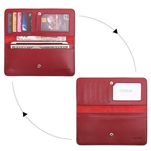 ECOSUSI Thin Wallet Long Bifold Leather Purse Minimalist Clutch Card Holder for Women and Men