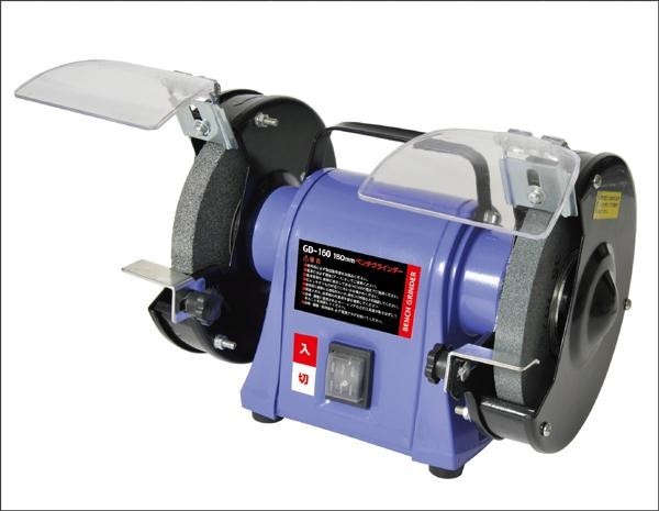 | 仕様 | 【電源】AC100V 50/60Hz 【電流】2.1A 【定格消費電力】150W 【定格使用時間】15分 【無負荷回転数】50Hz:2950、60Hz:3450min-1(回転/分) 【研磨砥石】φ150×厚さ16×穴径12.7mm A材(36番、60番) 【コード】3芯 1.5m(アースクリップ付) 【周速度】50Hz:23.1m/s、60Hz:27.0m/s 【使用可能砥石サイズ】φ150×厚さ6.4~16×穴径12.7mm |