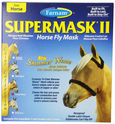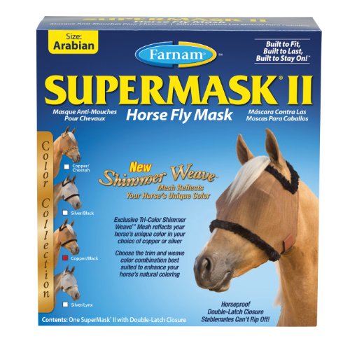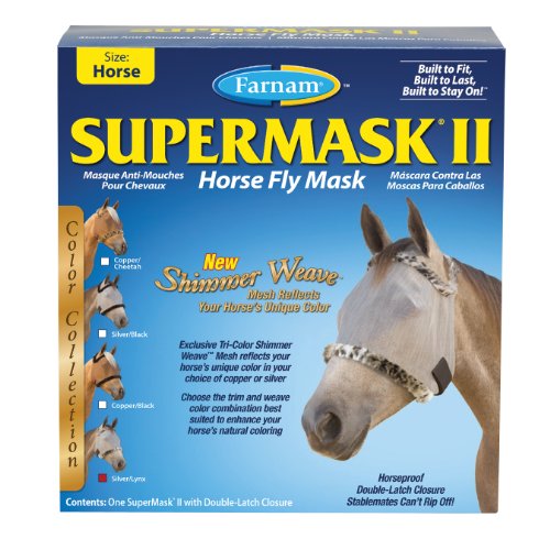 SuperMask II without ears, Shimmer Weave mesh color collection combines function with fashion like no other fly mask! The exclusive tri-color Shimmer Weave mesh reflects your horse's unique color, in your choice of trims.