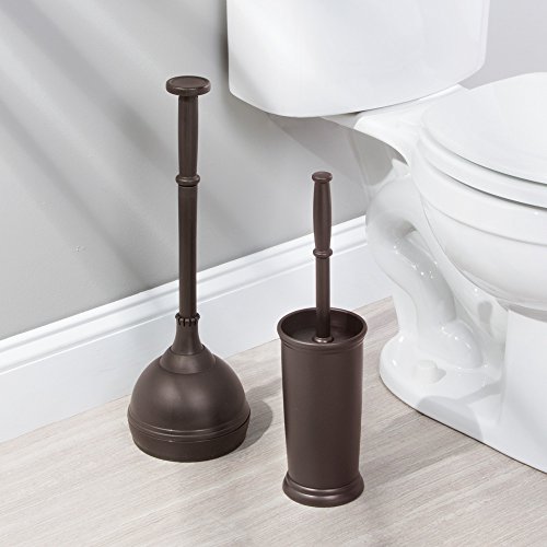 mDesign Bathroom Toilet Bowl Brush and Plunger - Set of 2, Bronze