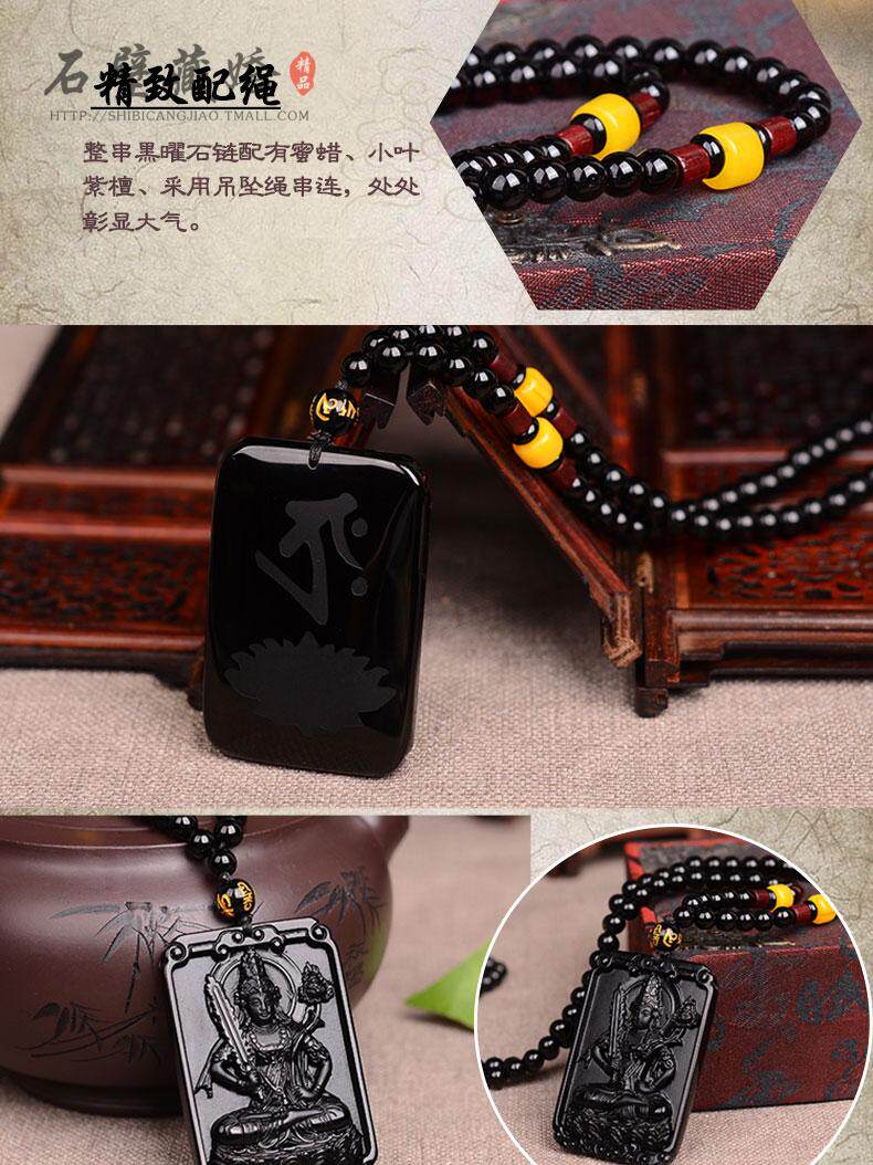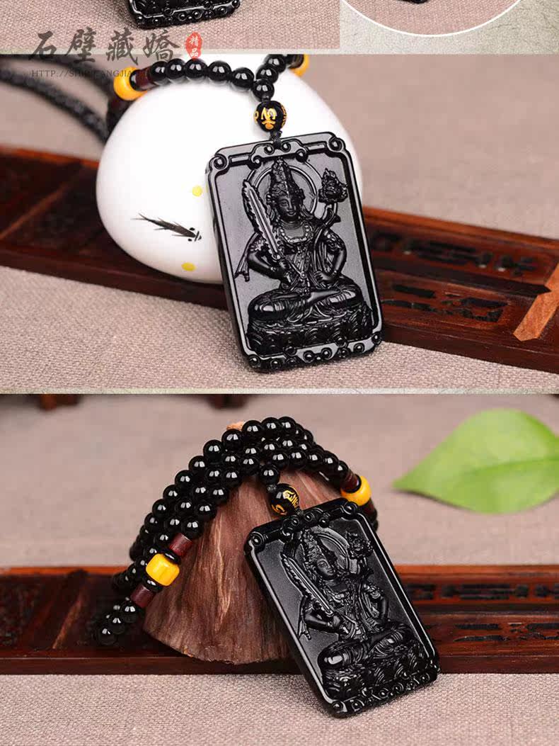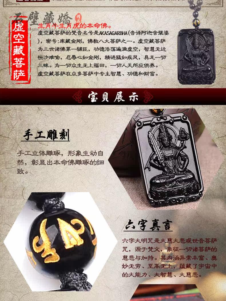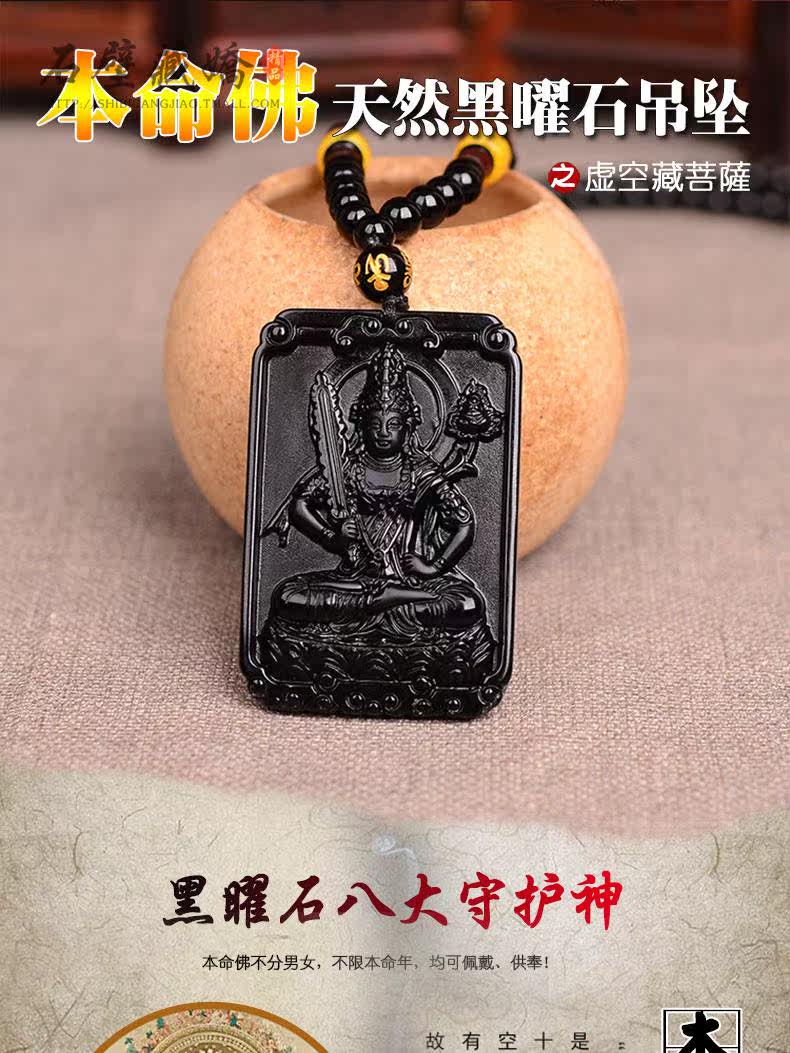 天然黑曜石本命佛开光八大守护神属虎牛虚空藏菩萨吊坠 男女项链