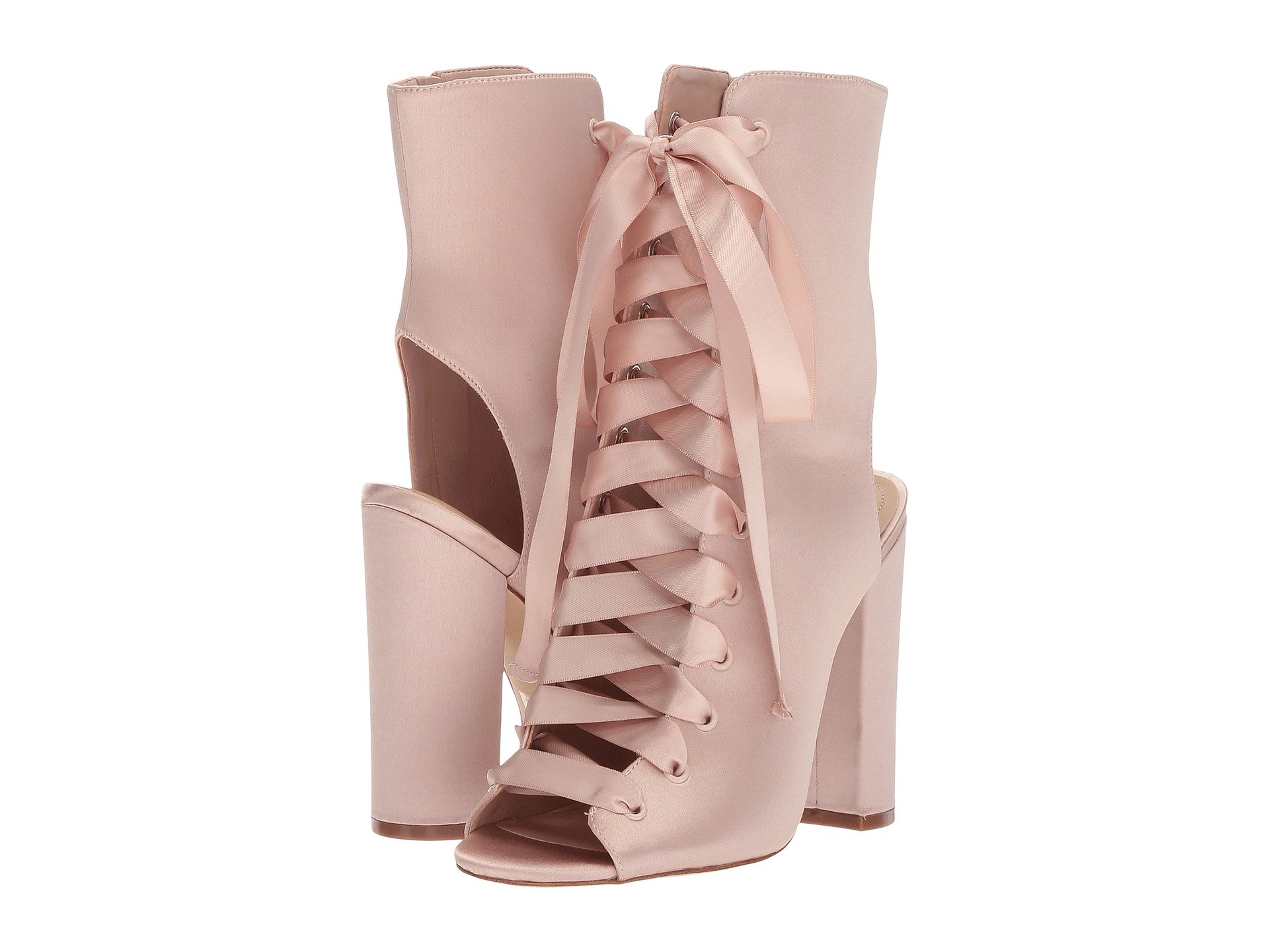 | Product Information SKU: #8929193These vintage-inspired booties have elevated appeal to complement your seasonal style.Satin fabric upper.Luxe ribbon lace-up front.Inside zipper closure.Open toe and expose heel on an ankle boot silhouette. Synthetic lining.Leather insole.Wrapped chunky heel.Synthetic sole.Imported.Product measurements were taken using size 38 (US Women's 7.5), width B - Medium. Please note that measurements may vary by size.Weight of footwear is based on a single item, not a pair.Measurements: Heel Height: 4 1?4 in Weight: 12 oz |