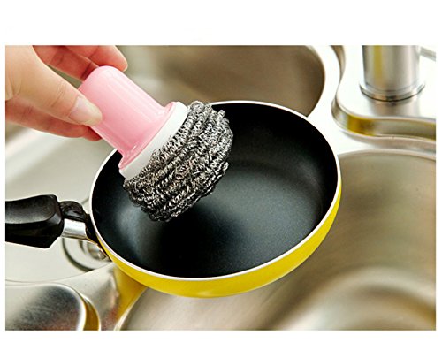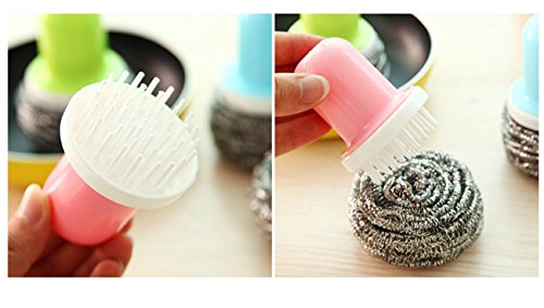 -. Feature : Size: 4.1x2.7 inch,Pink, Blue and Green,Random color / Material: ABS + Steel Wire / All-purpose brush for dishes, pots, pans and more.Rounded handle fits in your palm and features a soft, comfortable grip, no harm to your hands / Steel wool can effective remove the stain and tarnished,Removable Steel wool (Reusable): you can replace the steel ball when it broken / Package include: 3 x Kitchen Cleaning Ball with a Stylus