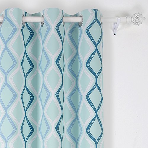 Deconovo Lattice Printed Blackout Window Curtain with Grommet Top Living Room Curtains for Kids Room 42W x 63L Light Green White Sky Blue and Dark Green One Panel
