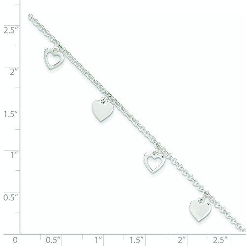 ICECARATS DESIGNER JEWELRY 925 STERLING SILVER 9 HEART 1 INCH ADJUSTABLE CHAIN PLUS SIZE EXTENDER ANKLET FOR WOMEN ANKLE BEACH CHAIN BRACELET