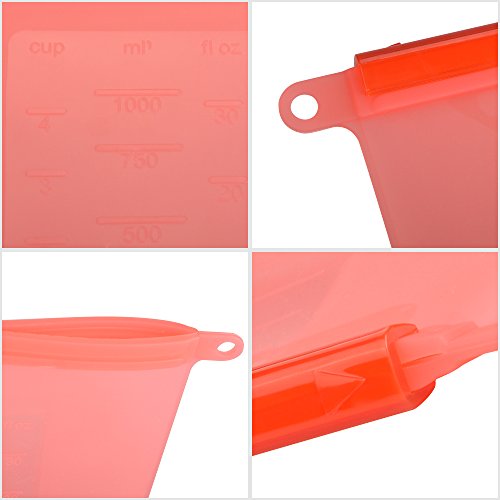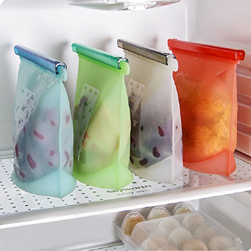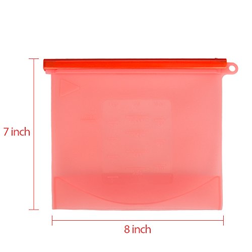 - 4. CONVENIENT FOR CLASSIFY AND REUSABLE: a variety of sizes and four color: transparent, red, blue, green are provided for selection. The mark on the surface can not only help you classify your food Organized. Please use a reusable product and not plastic baggies or cling wrap. This reusable silicone food bag is much better for you and the environment, really reducing the amount of plastic that we use in our house and super easy to clean.