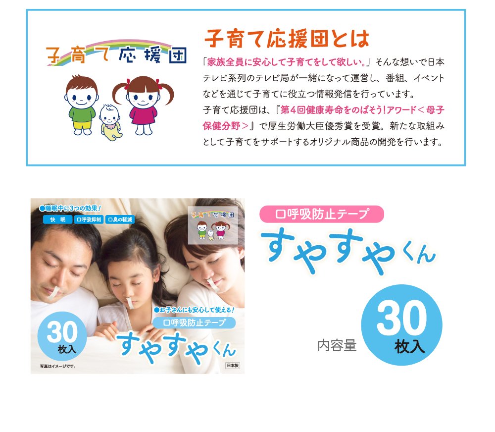 We developed "mouth respiration prevention tape Sayasuya-kun" to support child-rearing sleep problems.
