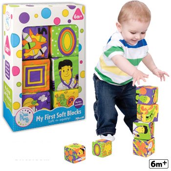 -. Binding : Toy -. EAN : 0085761079236 -. Feature : Baby Toys: "My First Soft Blocks" Stacking Blocks. / A set of six patterned 3 inch fabric covered foam block to hold, squeeze and throw. / A favorite for children ages 6 & up. / Machine washable. -. Label : Baby Toys -. LegalDisclaimer : Must be at least 18 years of age and over to purchase. -. Manufacturer : Baby Toys -. ProductGroup : Baby Product -. ProductTypeName : TOYS_AND_GAMES -. Publisher : Baby Toys -. Studio : Baby Toys -. Title : Baby Toys: "My First Soft Blocks" Stacking Blocks -. UPC : 085761079236