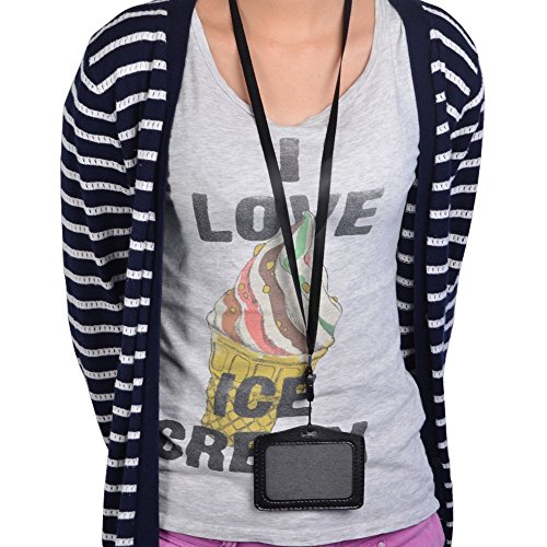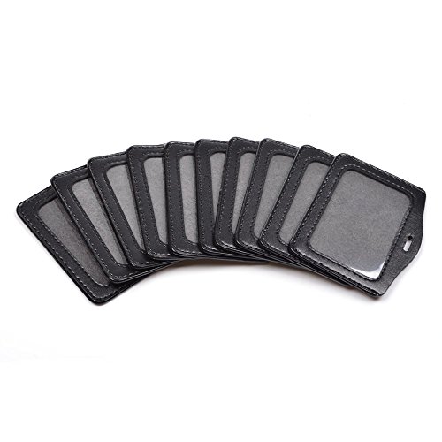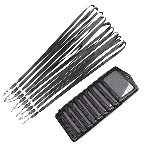 KLOUD City 10 PCS Black Leather Business ID Badge Card Holder with Neck Strap Band Lanyard (10 Horizontal Style)