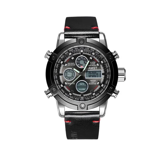 | [해외] 15 색 브랜드 amst 가죽 스포츠 시계 육군 군사 달력 남성 야외 방수 시계 다기능 남성 석영 시계 |