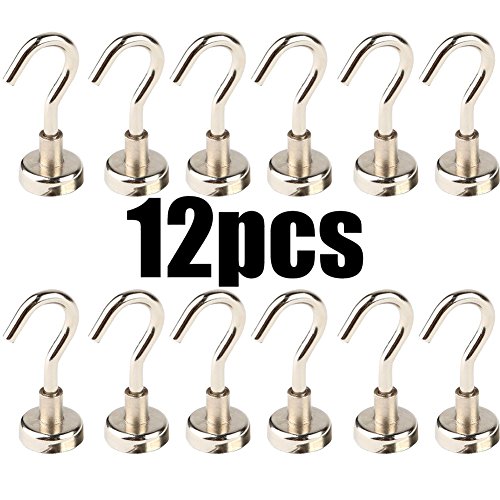 LGDehome Multi-Function D16 16mm Super Strongest 12LB Heavy Duty Neodymium Magnets Hanging Hooks Powerful Kitchen Magnetic Hanging Hooks for Indoor / Outdoor Bathroom Fridge Silver (Pack of 12)