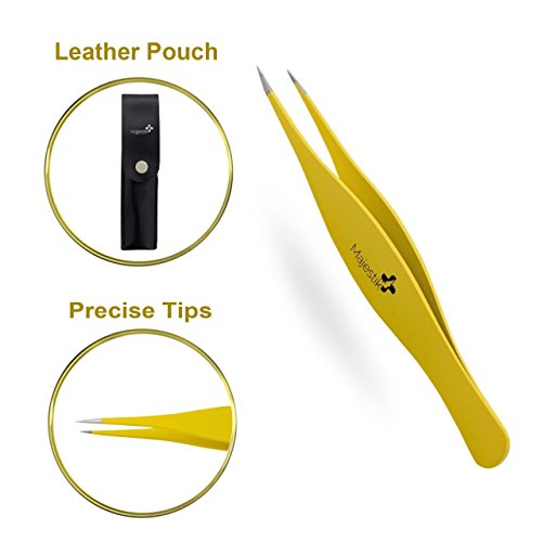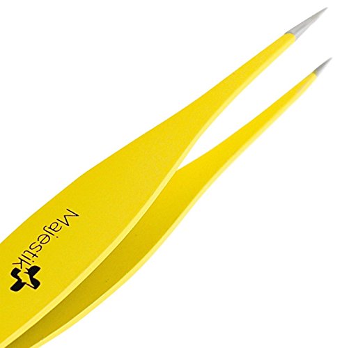 Majestik+ Precision Tweezers For Ingrown Hair - Professional Pointed Tweezer – Eyebrow And Splinter Removal Tweezers, Pointed Tip For Stubble, Facial Hair- Perfectly Aligned Tips In Yellow