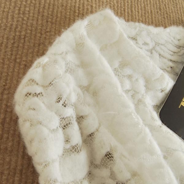 レース 千鳥格子 長袖 ウール コットン