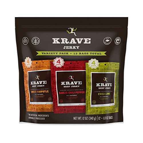 Studio : Krave Publisher : Krave Binding : Misc. Product Description Enjoy a protein snack made with tender beef jerky, all-natural ingredients and unique flavors. This variety pack is perfect for your on-the-go lifestyle with 12 individual one-ounce bags. With flavors like Sweet Chipotle, Garlic Chili Pepper, Chili Lime, snack time will always be fun and exciting 0