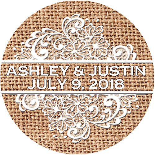 Burlap and Lace 2" Party Favor labels Great for personalizing your events Candles, cupcake toppers Mason Jar decals, Stickers …
