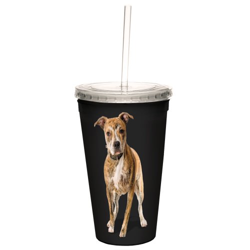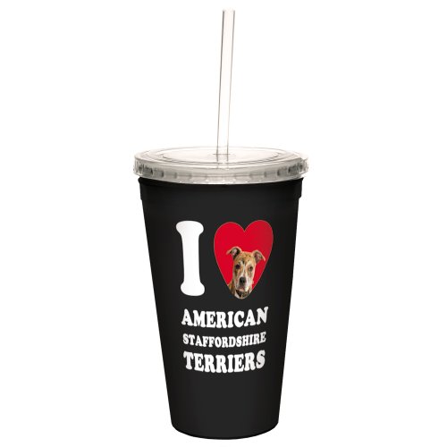 Tree-Free Greetings CC34992 I Heart American Staffordshire Terriers Double-Walled Cool Cup with Reusable Straw, 16-Ounce, Tan/Black/White