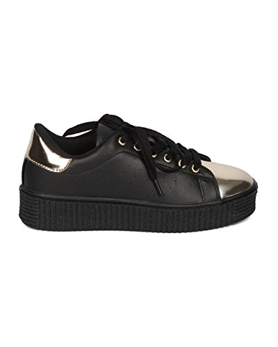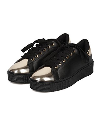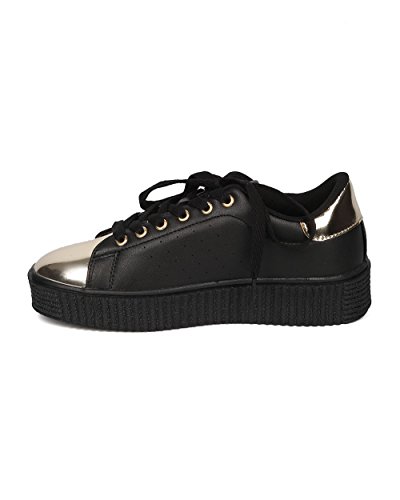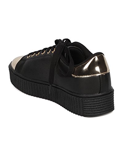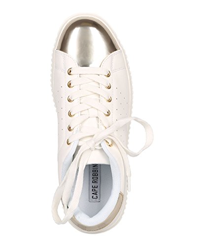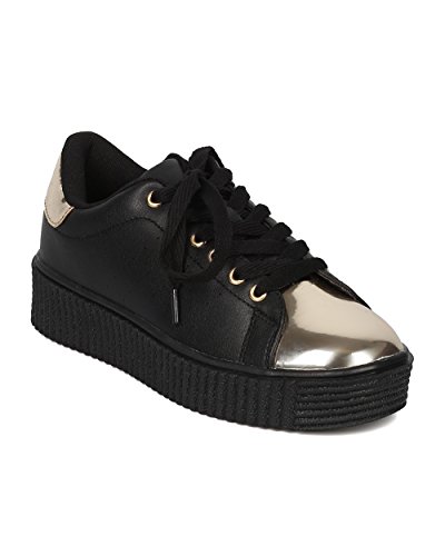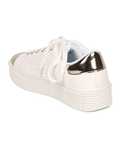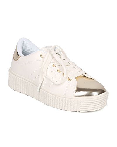 Women Leatherette Flatform Sneaker - Platform Capped Toe Sneaker - Two Tone Everyday Sneaker - ...