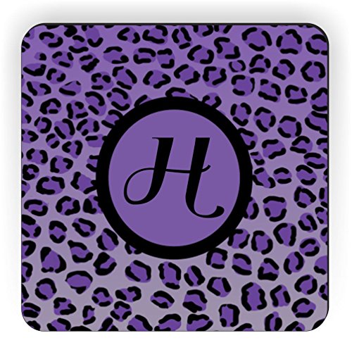 Rikki Knight Letter "H" Initial Purple Leopard Print Monogrammed Design Square Fridge Magnet