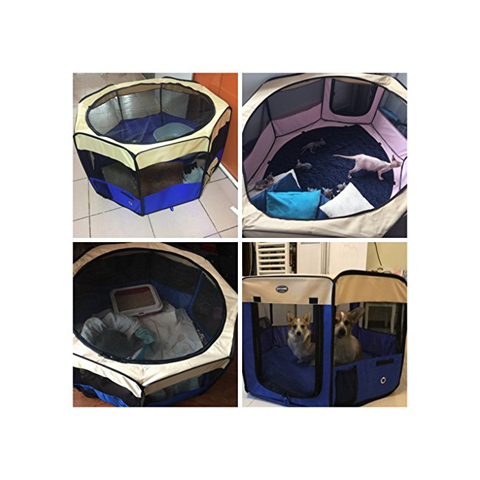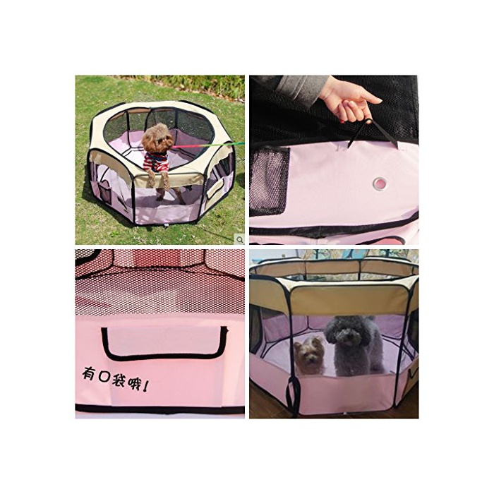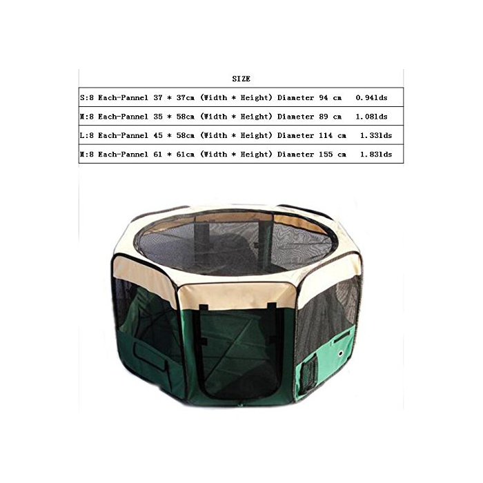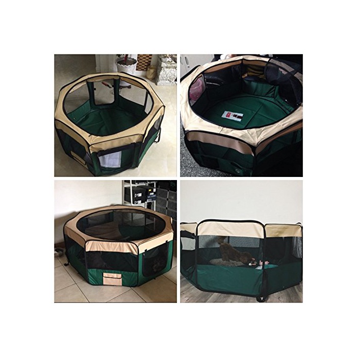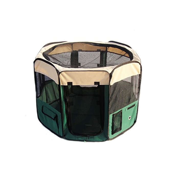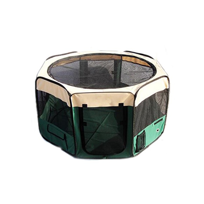 Hqclothingbox 접이식 팔각형 애완동물 써클 XL사이즈 【그린】 직경150cm×높이62cm 메쉬 지붕 부착 옥내 옥외 아웃도어