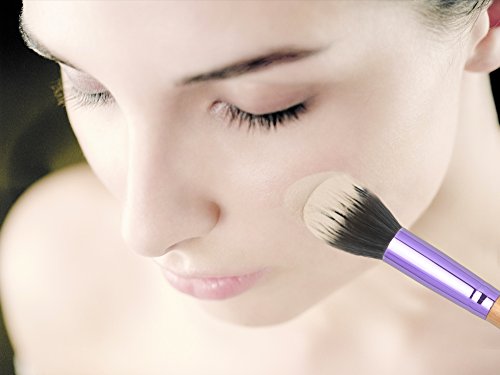 Qivange Powder Brush, Soft Wooden Handle Makeup Brush with Pouch(Wooden with Purple, 1 pc)