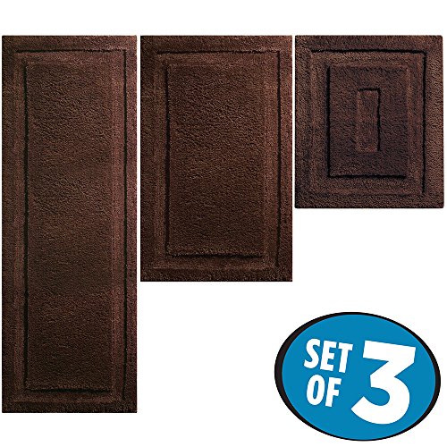 mDesign Soft Microfiber Non-Slip Bathroom Mat/Rug for Bathroom, Vanity, Bathtub/Shower, Dorm Room - Set of 3, Chocolate Brown