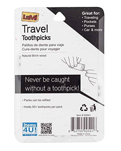 Studio : LaMi Products Publisher : LaMi Products Product Description You just finished eating and you have a meeting to attend. Just when you need a toothpick you cannot find one. Now you can carry your own toothpicks easily without poking your fingers while trying to find one loose in your purse. These easy-to-carry containers allow you to dispense one toothpick at a time. Easy to retrieve, just slide to open and shake one out. Slide the closure back and nothing falls out. Simple to refill. Just remove the lid and refill with up to 50 toothpicks. Handy for your purse, pocket, or backpack. 0