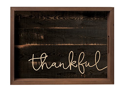 Thankful Script Design Black Distressed 20 x 15 Inch Solid Pine Wood Farmhouse Serving Tray
