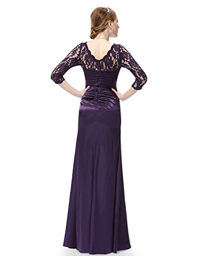 This stunning black evening dress features a figure flattering ruched satin waist and a 3/4 sleeve lace bust. The formal floor length of the dress coupled with the classic black color makes this dress perfect for any black tie affair; it has also been very popular with mothers of the bride and groomFeature