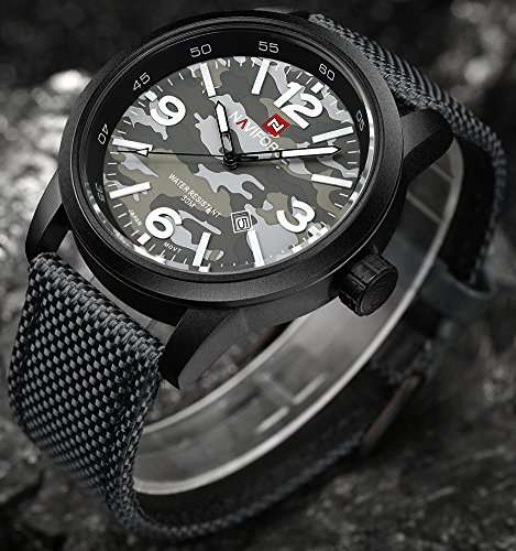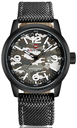 원본상품명:NAVIFORCE メンズ ナイロン バンド 合金 ケ?ス 迷彩 ダイヤル 防水 カレンダ? 日付 ミリタリ? 軍 クォ?ツ 腕時計 (グレ?)