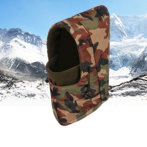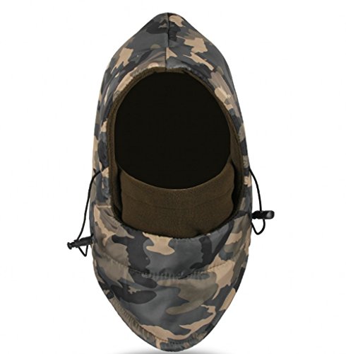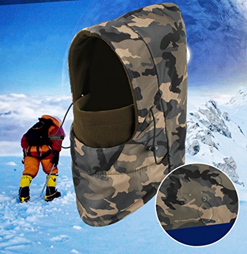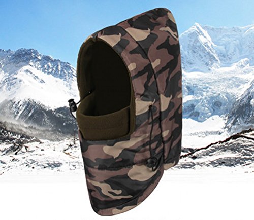 Waterproof material and Polar Fleece liner Hat circumference:22.04"-23.62"--- Width:12.2"--- High:11.81" Heavyweight Warm Balaclava comes with amazing features to ensure optimal comfort and protection against harsh weather conditions. The extra length in the front and back extends to into your jacket to help completely seal out the cold. ski face mask windproof, soft comfortable to giving you head, ear and neck enough protection against cold and wind. The one-size-fits-all easily fits, stays comfortable and is a perfect fit for men, women and children. The exceptionally breathable fleece hood adds to the overall comfort. Extremely breathable fleece hood is you best partner on the road in bitter-cold conditions. Warning: Keep away your Balaclava from heat sources and flame,this may cause damage. 0