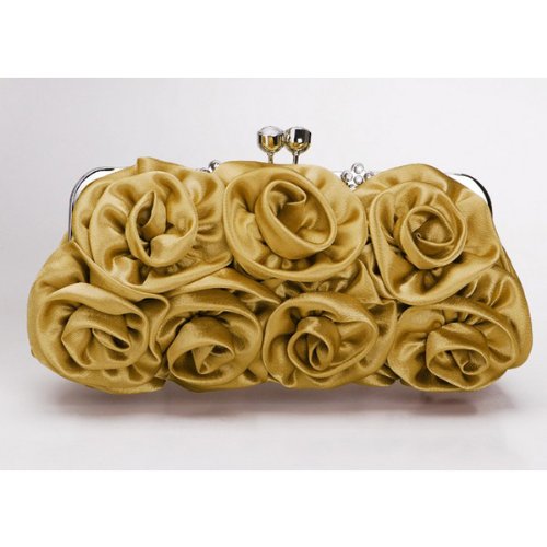 (EchoMerx)/Accessories/Handbags/DIRECT FROM USA/Blossom Clutch Satin Purse wit Jeweled Clasp (Brown)