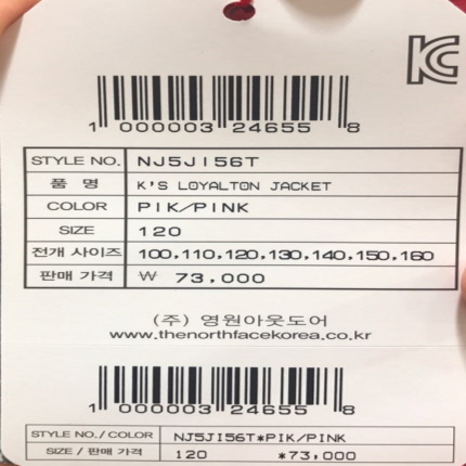 2. 본 제품은 전국 백화점 노스페이스 매장에서 A/S및 교환이 가능합니다.